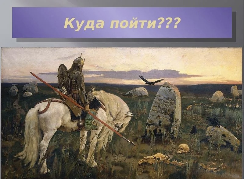 Помните развилку на том самом камне выбора: «Направо пойдёшь — добро потеряешь, налево пойдёшь — коня потеряешь, прямо пойдёшь — сам пропадёшь»? Интерпретация в разных фильмах, картинах и сказках может быть разной, но частенько встает вопрос выбора, как в выдуманном мире, так и в реальном.