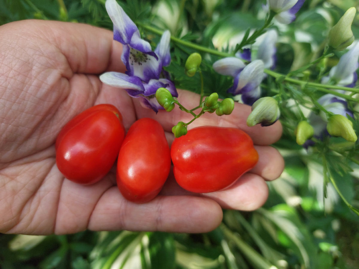 Есть у меня в этом году замечательный черри из серии Козула. (Селекционер Анна Янковски из Польши.) Уже рассказывала в одной из статей по сорт Козула 47, а теперь очередь дошла и до Козула 14. Вот такие маленькие, красные, блестящие, красивые, ребристые, грушевидные помидорчики. Уже забыла где семена покупала, но если интересно, посмотрю записи и отвечу вам в коментариях. Приобрела этот сорт из за того, что в описании было указано, что у него многцветковые (мультифлора, веерные, букетные) кисти и что он очень урожайный. Люблю сорта с подобным видом цветоносов. Стараюсь каждый год хотя бы по 1-3 такие новинки покупать. Потом когда цвести начинают, тихо радуюсь, что у меня пополняется список выращенных томатов с букетным типом цветения. Вот такие кисти у Козула 14 получились. Растение у меня не избалованное уходом, но все равно кисти многоплодные. Плоды вершинкой не болеют, не осыпаются и не трескаются. Это меня радует. Растение получилось не высокое и не очень сильное, как обе