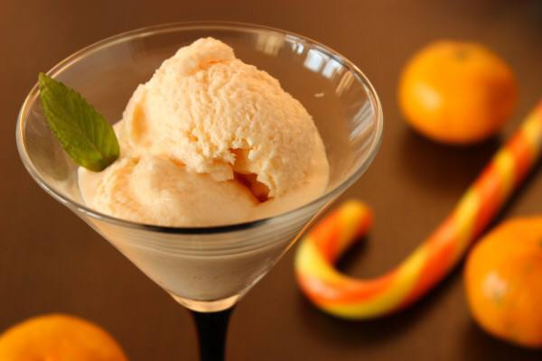 🥣 Смешиваем сметану, сгущенное молоко и мандариновый сок-пюре.