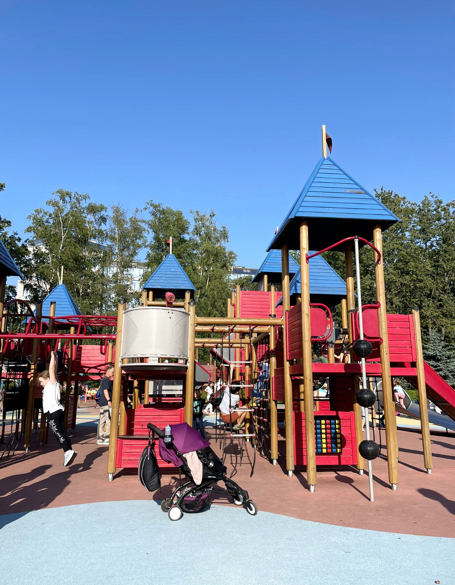 На Крестовском острове классно гулять с детьми! Помимо парка «Диво остров» и Приморского парка с озерами, лебедями, белочками и большим фонтаном, на острове есть ряд хороших локаций. Сейчас по порядку расскажу и покажу. Площадка находится на территории, где аттракционы для самых маленьких. Одно время на была платной. Потом, видимо, махнули рукой и теперь там можно просто гулять всем желающим. Площадка большая и хорошая. Помимо основной красной конструкции есть ещё несколько рядом. 📍 Координаты: 59.973076, 30.257238 Эта площадка нам нравится экскаваторами и батутамим которые находятся ниже уровня земли. Такие батуты мы когда-то видели в Германии и детям они ещё тогда приглянулись, в незапамятные времена до пандемии. Вообще площадка очень приятная по цвету и расположению. Она на большом свободном пространстве. Ещё фишка площадки — оставленные с советских времен большой слон и крокодил, по которым можно лазать. 📍 Координаты: 59.966944, 30.258133 Если от площадки с экскаваторами идти