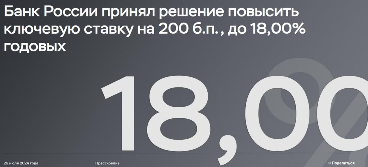 Из пресс-релиза ЦБР: «Инфляция ускорилась и складывается существенно выше апрельского прогноза Банка России. Рост внутреннего спроса продолжает значительно опережать возможности расширения предложения товаров и услуг. Для того чтобы инфляция вновь начала снижаться, требуется дополнительное ужесточение денежно-кредитной политики, а для возвращения инфляции к цели — существенно более жесткие денежно-кредитные условия, чем предполагалось ранее. Банк России будет оценивать целесообразность дальнейшего повышения ключевой ставки на ближайших заседаниях. Прогноз Банка России существенно пересмотрен, в том числе по инфляции на 2024 год повышен до 6,5–7,0%». По-прежнему нет ответа на вопрос, почему инфляция и «рост внутреннего спроса» ускорились и почему столь высокая процентная ставка в 16, теперь уже 18%, их не сдерживает. Более того, ЦБР грозится на следующих заседаниях обсуждать вопрос дальнейшего повышения ставки. Конечно, когда не анализируешь и не хочешь называть причин того, что происхо