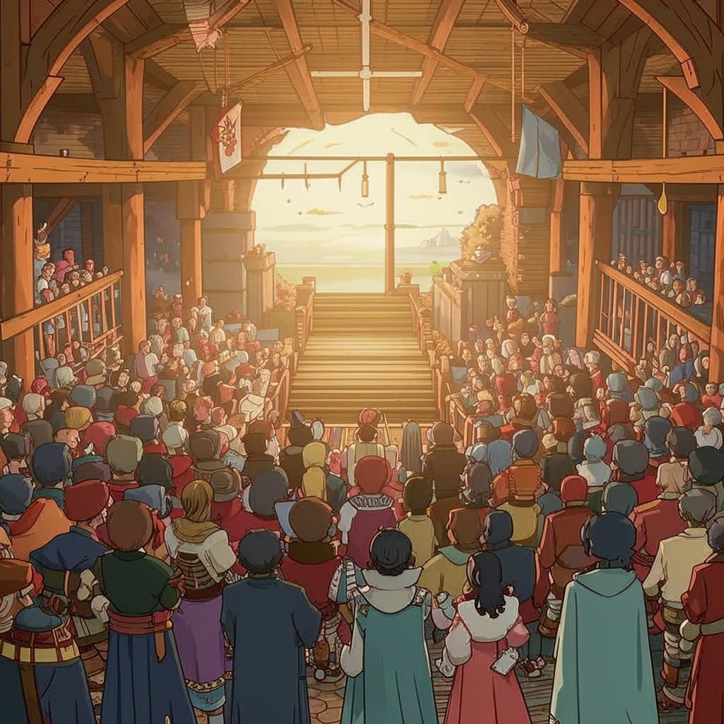 Народ Жыма собрался на площади перед сценой. Кажется, это был первый раз, когда я видел всех жителей в одном месте - так я впервые осознал, как сильно выросло наше игрушечное королевство. Места перед сценой не хватило, и часть жителей толкалась на улице Жыма и улице принцессы Типы.