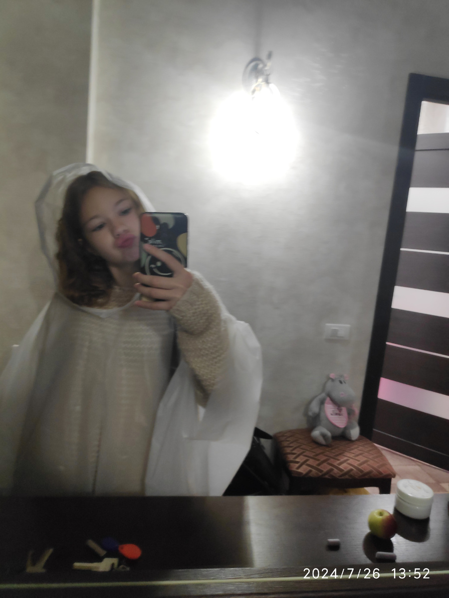 Всем приветик! После того как я забрала посылку я пошла сразу домой . И кстати на улице погодка была не вау. Вчера была получше. А так я измочила все свои штаны. Хоть я и была в сапогах и дождевике. Кстати я потихоньку начала надевать мамины вещи . К примеру сегодня я надела еë шерстяной свитер . И он оказался такой тëпленький. В общем я тоже захотела себе свитер. Прям как у мамы вязаный. Поискала и такого же нигде не нашла. 😭. Но вот так вот сегодня я ходила на улицу.
