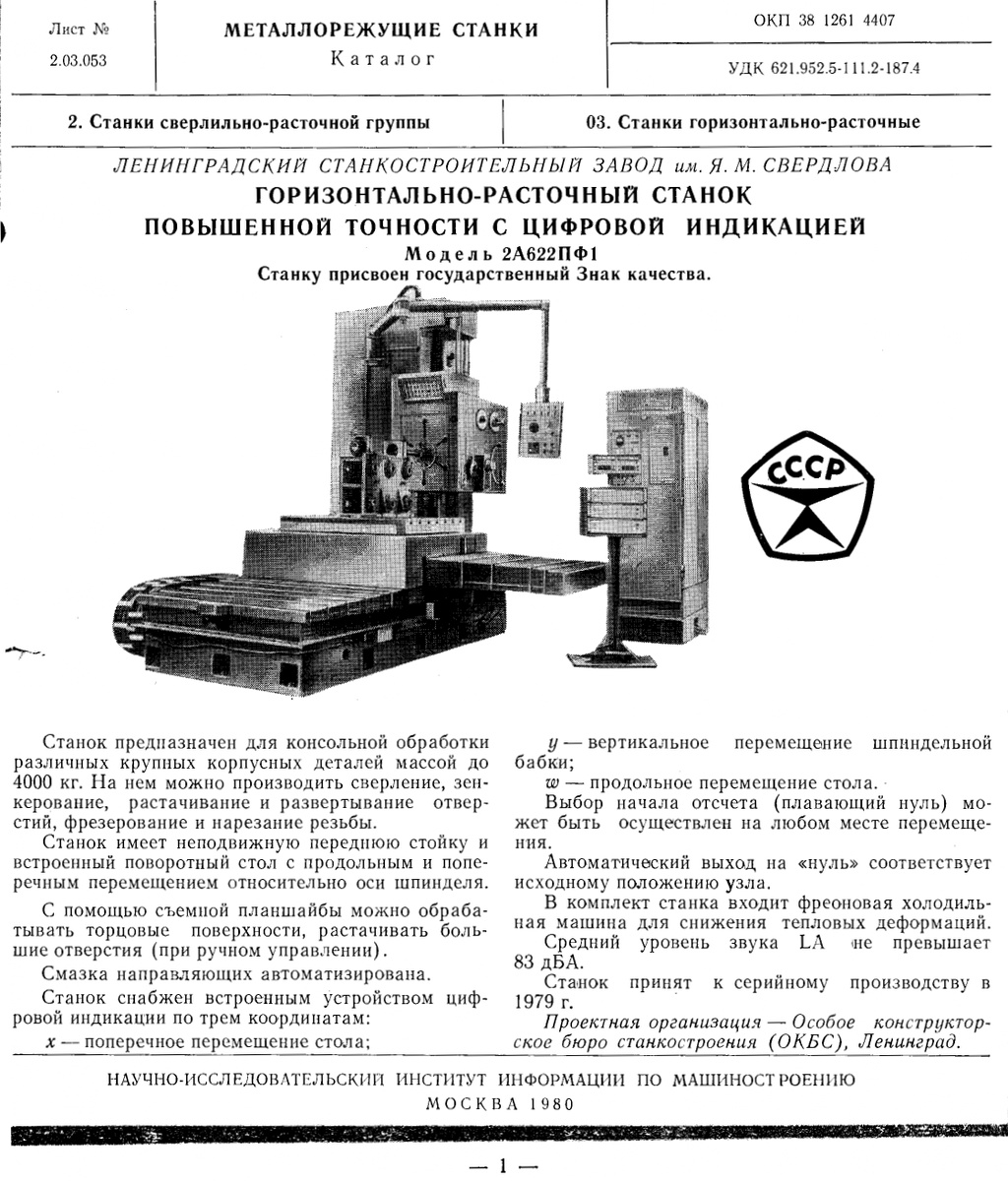 Технические характеристики на горизонтально-расточной станок 2А622ПФ1