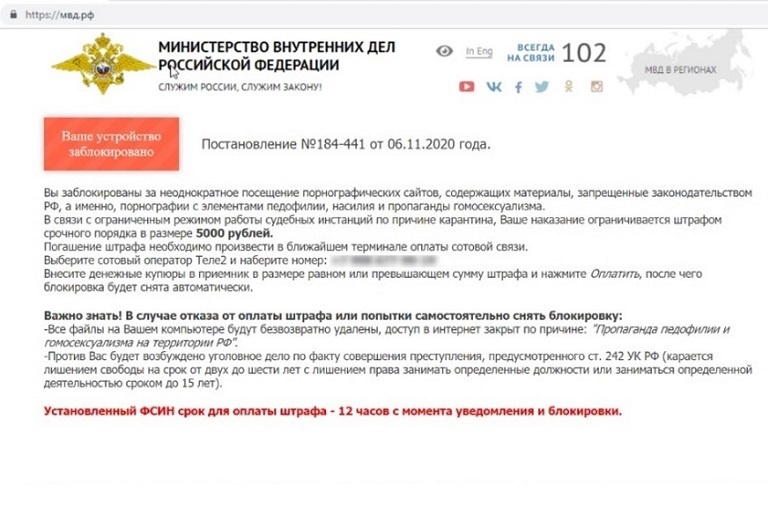 Мошенники, а речь идет все-таки именно о них, взяли на вооружение почти забытую всеми технологию блокировки компьютеров, шантажирующую пользователей информацией о посещении запрещенных сайтов. В разные времена это выглядело по-разному. Еще года 3 назад от имени МВД возникали блокировки за посещение сайтов с порнографическим содержанием. Сейчас – якобы за посещение страниц, направленных на дискредитацию ВС РФ, о чем сообщил ТГ-канал Baza.