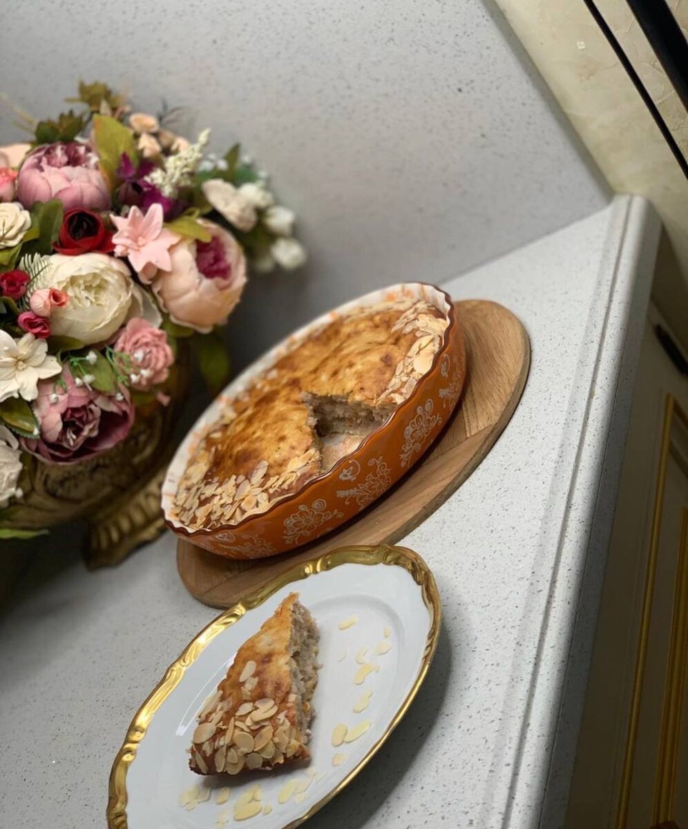 Видео рецепт по ссылке Ингредиенты Мука - 200 гр Яйца - 5 шт Сахар - 200 гр Творог - 400 гр Рубленые Грецкие орехи - 60 гр Изюм - 60 гр Миндальные лепестки- 60 гр Масло растительное - для смазывания формы. Приготовления: Миксером взбейте яйца до однородной консистенции. Всыпьте сахар и взбейте ещё раз. Добавьте творог, изюм и грецкие орехи перемешайте, добавьте разрыхлитель и ванильный экстракт. Всыпаем просеянную пшеничную муку, муку нужно обязательно просеять, чтобы удалить различного рода примеси и насытить ее кислородом, что в свою очередь, сделаем запеканку более мягкой и нежной перемешайте хорошенько все ингредиенты. Смажьте форму для выпечки маслом и переложите туда творожную массу. Украсьте миндальными лепестками и отправьте в духовку на 180° 45 минут. ✨Готово✨ ✨Приятного Аппетита✨