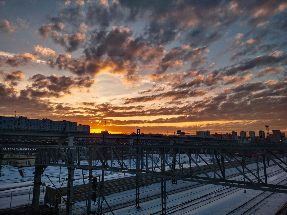 Так, как я уже знал тему дипломной работы, а писать я ее буду по станции Крюково, следовательно, мне нужно было заехать на станцию, пообщаться с начальством и отдать договор на практику, чтобы немного понять как работает станция и потихоньку собирать информацию на диплом. Но все пошло не так, как я хотел, прям совсем. Вместо практики в тот же день меня отправляют в ДЦС, там дают направление на медкомиссию. Все происходило так быстро, что я даже не понимал - правильно или нет, нужно ли это делать. С другой стороны - работа была в 10-20 минутах от дома, если не застрять в пробке. Получив все документы на руки я задумался - а пройду ли ВЭК, а вообще может не стоит даже начинать это дело? Все-таки станция первого класса (да, Крюково с вводом проекта МЦД стало первым классом по объему работы) и тут будет весьма тяжело. Те пол часа в дежурке, что провел на ознакомлении - ни разу не показатель. Друзья подбодрили сказав - не пройдешь комиссию, ничего не потеряешь, а пройдешь - будешь уже смотреть далее, как пойдет. Медкомиссия была в Перово (клиника РЖД), многие это место ругают, но я за 5.5 часов прошел почти всех врачей, чуток не успел на заключение ВЭК. Поэтому на следующий день надо было сюда вернуться и сидеть уже до победного. Вечером на Моссельмаше меня встречал прекрасный зимний закат. Вообще эта зима была хороша на краски вечерние.