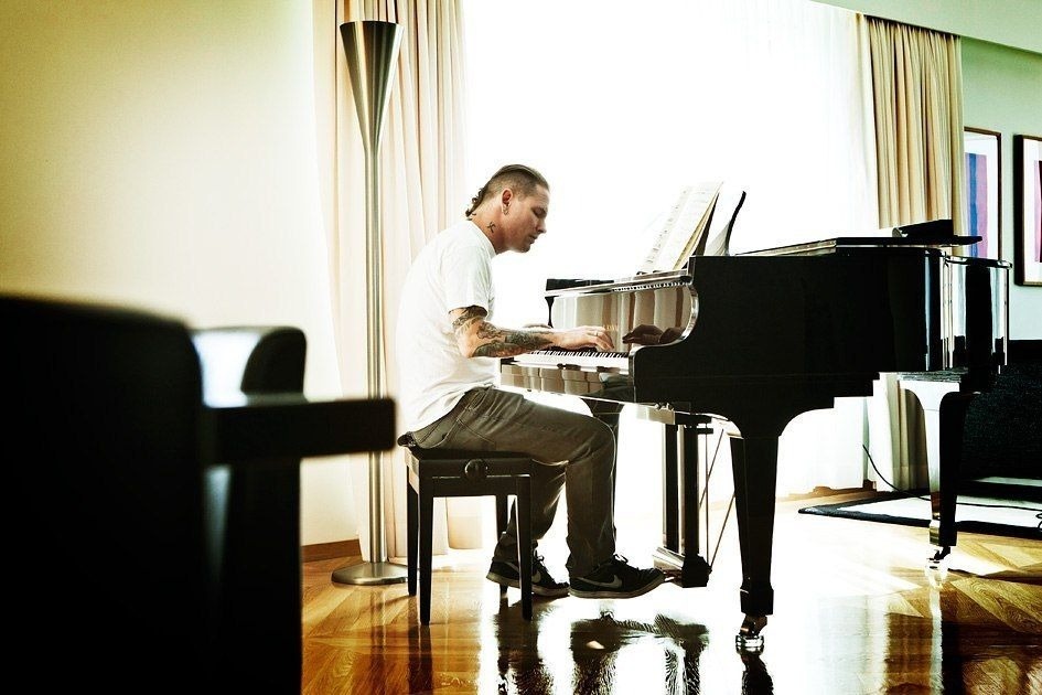 «Я всегда хотел играть на пианино, но у меня никогда не было на это времени. У меня никогда не хватало терпения, чтобы действительно этим заняться, и я не удосужился купить пианино, потому что это то, что вам нужно – вам нужно пианино. Так что я писал материал, писал определенные вещи, но это были просто формы на пианино. Я не знал какие это клавиши, я просто знал, что, если я что-то написал, то потом я сяду, подберу это на гитаре и выясню что это было. Так что я не пытался понять, на каких клавишах я играю или где что находится. Только три года назад я купил пианино и начал находить ноты, которые звучали в унисон со мной, и я понял, где находятся аккорды, а поскольку я пишу все на полтона ниже, мне и учиться пришлось на полтона ниже. Так что я не играю в стандартной высоте тона А440, я играю в тональности ми-бемоль, и я научился играть на пианино все, что я когда-либо писал. Я просто сел и начал играть под аккомпанемент того, что я написал на гитаре, и я понял, где аккорд E, где