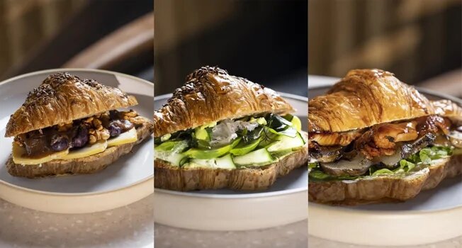 Три красивых начинки для круассанов Круассаны принято ассоциировать с утром и завтраком, но на самом деле их гастрономические возможности очень широки. Они не ограничены жанрами «сладкое» или «выпечка» и при должном подходе легко трансформируются в плотную закуску или даже легкий обед. Пористая и слоистая структура круассана отлично впитывает любые соусы, а хрустящая корочка помогает удерживать содержимое внутри — оказывается, круассаны — практически идеальная база для сэндвичей. В качестве отличной иллюстрации — три рецепта шефа бара «Котельная» Дмитрия Погорелова. Каждый из них очень красивый и, что важнее, грамотно выверенный с точки зрения сочетания вкусов и текстур. Сыр, виноград и грушевый соус, авокадо и водоросли, угорь, топинамбур и сливочный сыр — это только три варианта, а сколько еще можно придумать самостоятельно! Не говоря уже о том, что можно использовать разные круассаны, — из пшеничной муки или из смеси разных, с семечками или орехами и так далее. Пробуйте и делитесь р