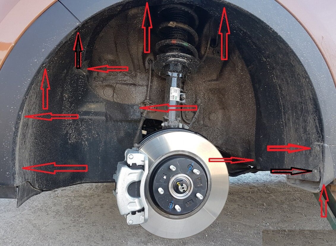 Подкрылки Hyundai Creta снимаем для замены и возможно антикоррозионной обработки кузова, а также возможно наклеить "шумку" (вибропласт). Операции по снятию показываем на брызговике и подкрылке левого колеса. 1. Для снятия подкрылка снимаем брызговик (винты и клипсы). 2. И поддев отверткой вынимаем фиксаторы в местах крепления брызговика. 3. Снимаем клипсы крепления локера(подкрылка). 4. Отворачиваем винт крепления крепления локера(подкрылка) в месте перехода крыла в бампер. 5. Снимаем скрытную клипсу 6. Вынимаем два пистона нижнего переднего крепления подкрылка к переднему бамперу. 7. И снимаем подкрылок и видим замечательную картину :). 8. Устанавливаем подкрылок переднего колеса, в обратной последовательности. 9. Номер локера для заказа Номер локера уточняйте по своей комплектаии Ничего сложного, и ничего нового нет. P/p/s/ Смотри инструкцию к своему авто т.к. могут быть свои конструктивные особенности. И не забывает о ТЕХНИКЕ БЕЗОПАСНОСТИ! В случае если Вы не уверены в своих действи