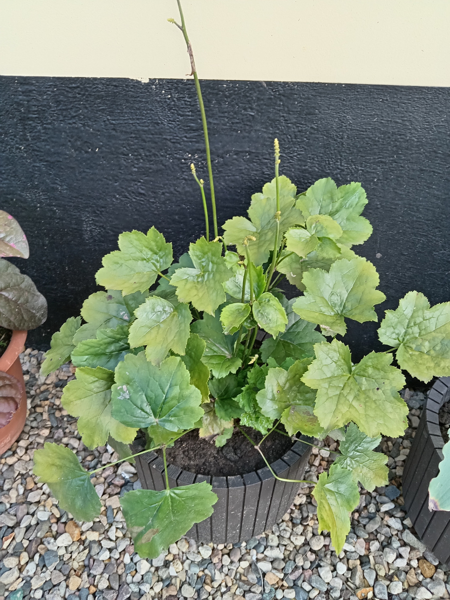 Новинок реально много. И те, которые в прошлом году приехали летом - осенью, и купленные недавно. Некоторые прямо удивляют. Клопогон японский. Про него я вам рассказывала, купила на рынке в начале сезона. Продавец сказала, что это клопогон, но определить его сорт мне не удалось. А тут у знакомой его увидела. Это кто такой, говорю. Японский клопогон. У меня, говорю, такой имеется. Да не может быть, знакомая аж в шок впала. Мол, она его только привезла и не продавала еще, это мол, редчайший и ценнейший экземпляр, с выставки. Ну не знаю, у меня все лето живет. Потом посмотрела, и правда, японский клопогон. Должен скоро распустить белые метёлки. Вот только я посадила его на солнце, и это было плохое решение. Горел нещадно. Поэтому пересадила в большое кашпо и в тенек от гаража. Этот клопогон имеет очень интересные листья, и они глянцевые. Такое редко можно увидеть. Мне он очень нравится, главное теперь не уморить. Нельзя не упомянуть и темнолистный клопогон. Покупала как Пинк Спайк,