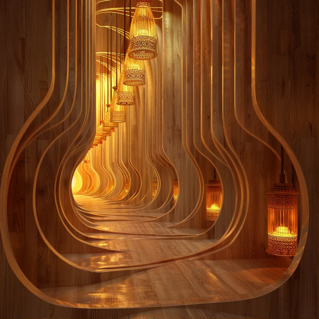 Мягкий свет магических светильников, расположенных в закруглённых нишах, окутывал зал теплым золотистым сиянием. Эти светильники были выполнены из прозрачного кристалла и источали свет, который плавно и равномерно освещал помещение, создавая атмосферу уюта и спокойствия. Лёгкое мерцание света на полированных деревянных панелях, которые обрамляли стены зала, придавало помещению ещё больше мистического очарования.