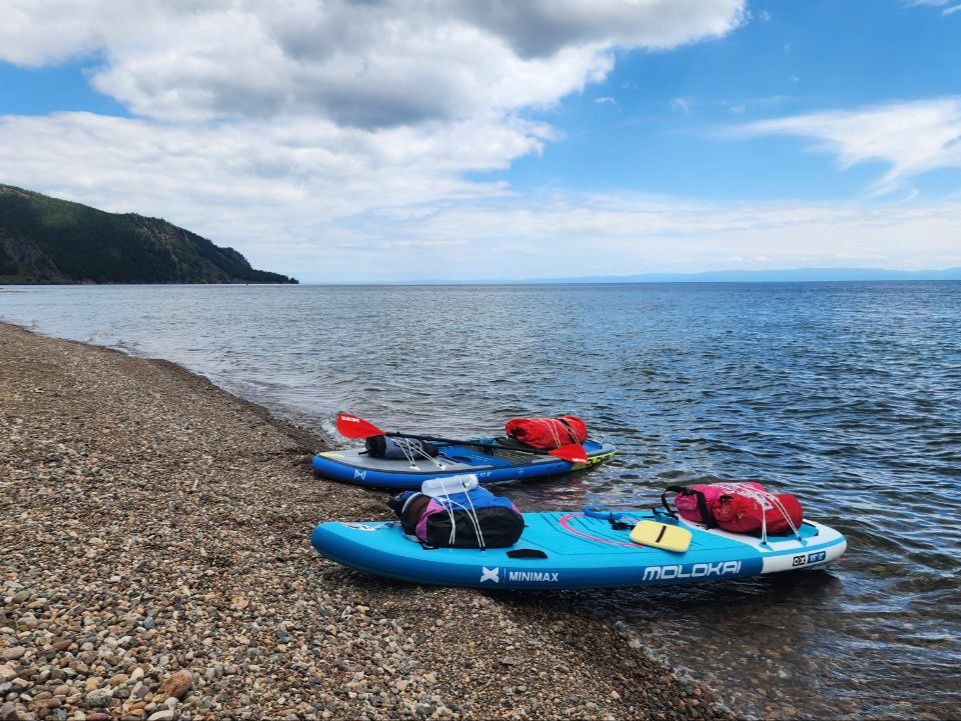 "А давай... ", часто с этой фразы начинается что-то интересное. Так, этим летом у одного человека возникла идея пройти на сапах маршрут Большое Голоустное - Листвянка, а другой человек ее поддержал. Желающие составить компанию моему брату и мне то прибавлялись, то отсеивались, и в итоге мы остались вдвоем. За две недели до старта мы прошли тест маршрут КБЖД-Листвянка, чтобы взвесить свои могу и хочу. Ветренный прогноз на даты сплава менялся, обещая то встречный, то попутный. В итоге решено было идти из Больших Котов в Голоустное за 3 дня с полеживанием на берегу и неспешным любованием красот с воды. И вот, субботним утром мы сели в Иркутске на катер до Котов. Кстати, на пристани нам пришлось взвесить и оплатить наш негабаритный груз 🧐 Байкал встретил нас серыми тучами вперемешку с солнцем и ощутимым боковым ветром. В ответ пришла мысль "А точно оно надо?" 🤣 Но сапы надуты, вещи уложены. Вперед! "Что-то кушать хочется... ". Делаем остановку в пади Сенная у подножья Скрипера. Пока
