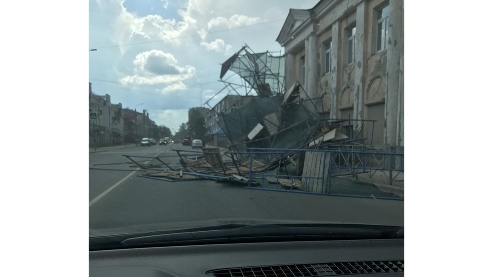 В Вышнем Волочке ветер повалил на дорогу строительные леса