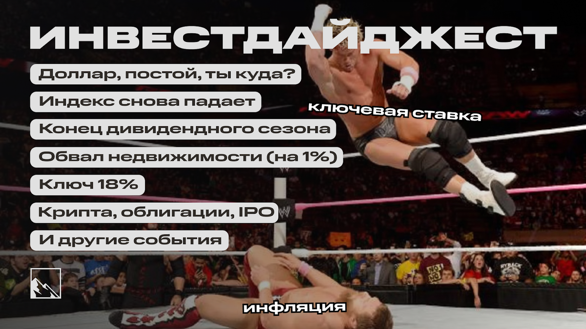 Эльвира Сахипзадовна преподнесла нам ключевую ставку 18%, ужесточила риторику и сделала инфляции ататат. Инфляция испугалась, а недвижка вообще обвалилась на 1%! Пока эксперты прогнозируют курс доллара по 100, он почему-то 86. Кроме того, закончился дивидендный сезон, ждём новые IPO, а эфир стал падать вместо того, чтобы расти. Собрал в посте самое важное, что произошло за неделю, читайте!