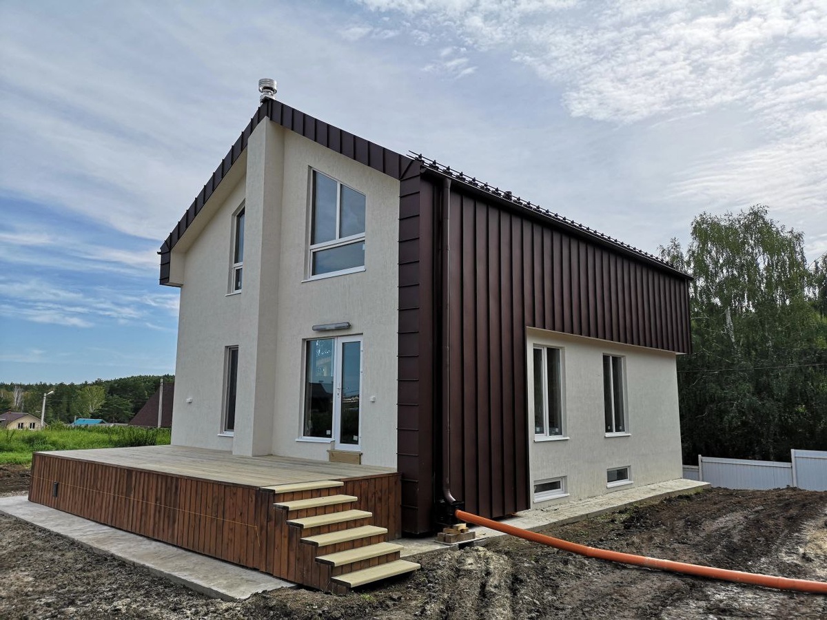 На фото дом смонтированный в готовности "под ключ" и его довольный владелец).