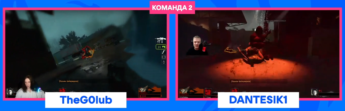 К сожалению, этому случиться было не суждено, и на это повлияло несколько вещей: у меня какое-то время не было ближнего оружия, которое очень сильно помогает, когда на тебя накидывается толпа врагов, наши боты умерли и мы не спасли их, к нам на нашу вышку забрался толстяк и своим взрывом скинул нас вниз, в связи с чем мы получили урон, получили забрызганные экраны и разделились, после чего Dantesik1 упал. Тут то все и перевернулось. Я использовал адреналин, чтобы поскорее подбежать к нему и поднять его, при этом у меня осталось меньше половины хп, соответсвенно мы оба медленно передвигались и были близки к смерти. Мы приняли решение побежать на другую сторону арены за аптечками, но именно в этот момент к нам пришел танк, который уронил меня на землю. В этот же момент появляется громила. В итоге получилась ситуация: я лежу в центре арены, а Dantesik1 лечится аптечкой, в то время как к нему бегут танк и громила. Он сумел вылечиться и убить громилу, осталось только убить танк и поднять меня, после чего прилетел бы вертолет, который закончил бы наши страдания, но вслед за громилой на арену пришел охотник, который повалил Dantesik1 и практически моментально его убил, а я не смог его спасти с помощью своего предсмертного пистолета. Эта смерть откинула нас в прогрессе на 7 с лишним минут. Добавим к ним еще пару минут, учитывая предыдущую смерть, и получим время, которого нашим соперникам было достаточно, чтобы нас обогнать. На таймере предательски осталость меньше 5 минут, которых было недостаточно, чтобы успеть пройти концерт, а наши соперники практически секунда в секунду к концу забега завершили уровень не умерев, не оставив нам шанса вернуть наше лидерство.