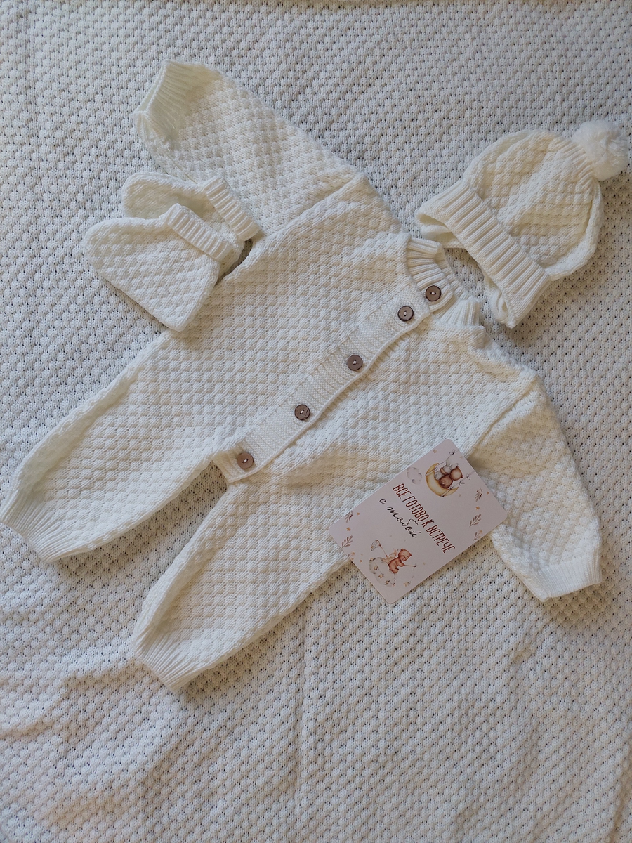 Сегодня хочу поделиться с нежным комплектом на выписку. Подойдет как на прохладное лето, так и на теплую осень.