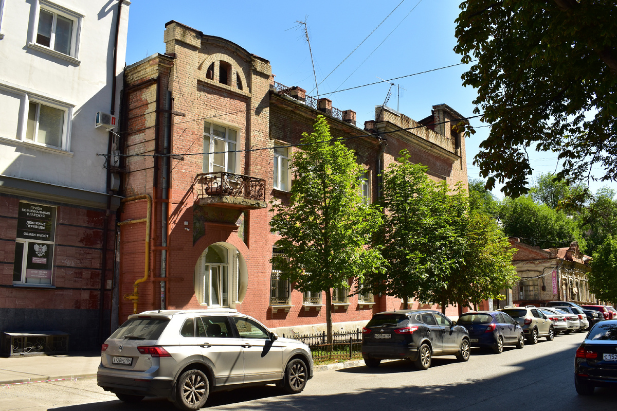 Начать я решил с образца рядовой застройки, коей полнится исторический центр Саратова. И действительно - в бывшей столице Поволжья очень много, скажем так, "простого" модерна, выраженного скромным декором и какой-нибудь неотъемлемой черты этого стиля (например - циркулярным окном или фигурным балкончиком).
