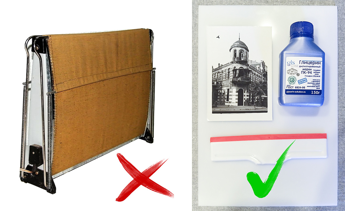 Дисклеймер. Пост адресован начинающим любителям аналоговой фотографии и фотопечати. Я размещаю в своей статье ссылки на некоторые товары исключительно для Вашего удобства и исключительно безвозмездно) Каждый, кто начинает пробовать проекционную аналоговую фотопечать с баритовой фотобумаги, сталкивается с проблемой выпрямления фотографий после их высыхания. Некоторые деятели сушат отпечатки сразу после финальной промывки на советском глянцевателе, лицевой стороной не к пластине, а к тряпке. Я тоже пробовал такой способ. Фотографии получаются все же не ровные, а слегка выгнутые, как и сам глянцеватель. Кого-то такой результат вполне устраивает. мне же хотелось получить идеально ровные фото, как фотооткрытка из сувенирного киоска. На фотофоруме было предложено множество альтернативных способов выравнивания. Почти все я попробовал и не вижу смысла их тут излагать, так как выбрал на мой взгляд самый эффективный. О нем и расскажу. Что нам пригодится: 1. Кусок оргстекла, не обязательно новый