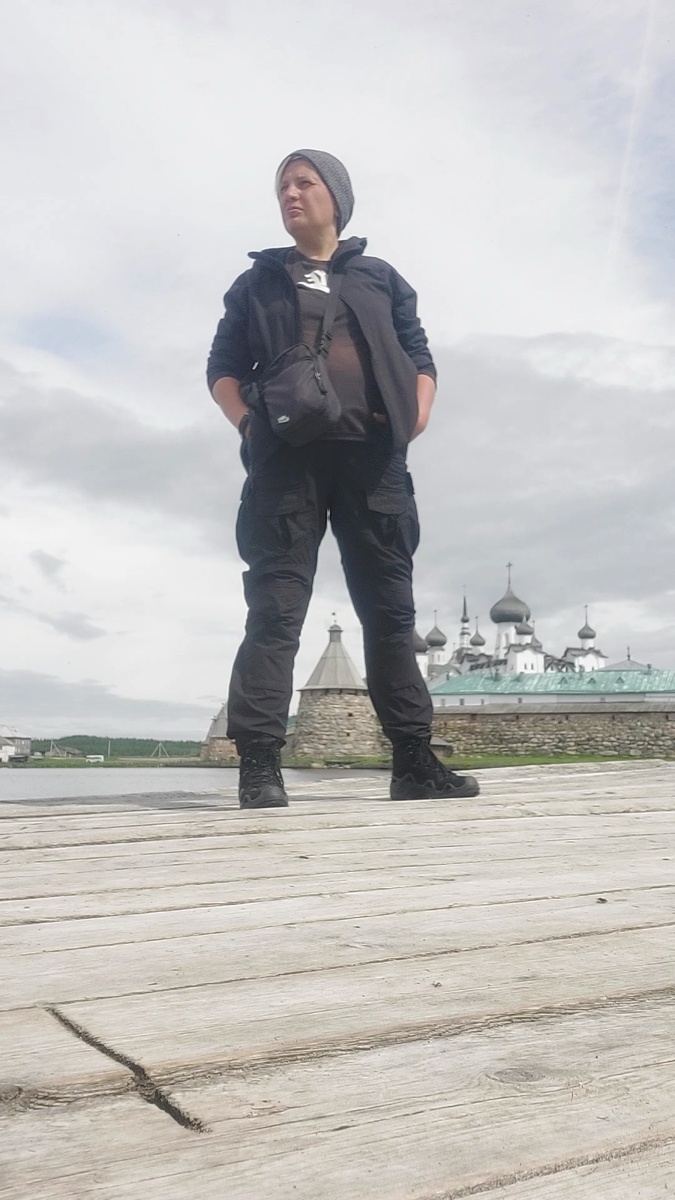 И вот ранним июньским утром я теплоходе "Святитель Филипп", держим курс к Большому Соловецкому острову. Белое море совершенно не белое, а темно свинцовое как отражение бездонноготемно синего неба. Вопреки ожиданиям совершенно не холодно, я стою на палубе и жадно вдыхаю морской воздух, вокруг ровные горизонты, а солнечный диск типа указывает нам путь. Через какое-то время на палубу вышла женщина, переходит от правого к левому борту, растеряно вглядывается вдаль.