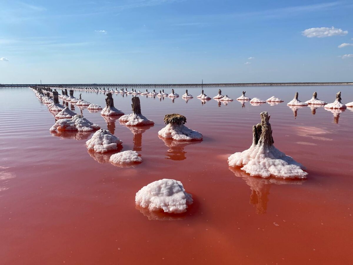 За насыщенный розовый цвет озера отвечает уникальная водоросль – Дуналиелла Салина, именно она окрашивает воду Сасык-Сиваша в мае-июне в ярко-розовый цвет, а в августе-сентябре – красно-оранжевый. Также цвет зависит от температуры воздуха. Чем жарче,тем ярче .