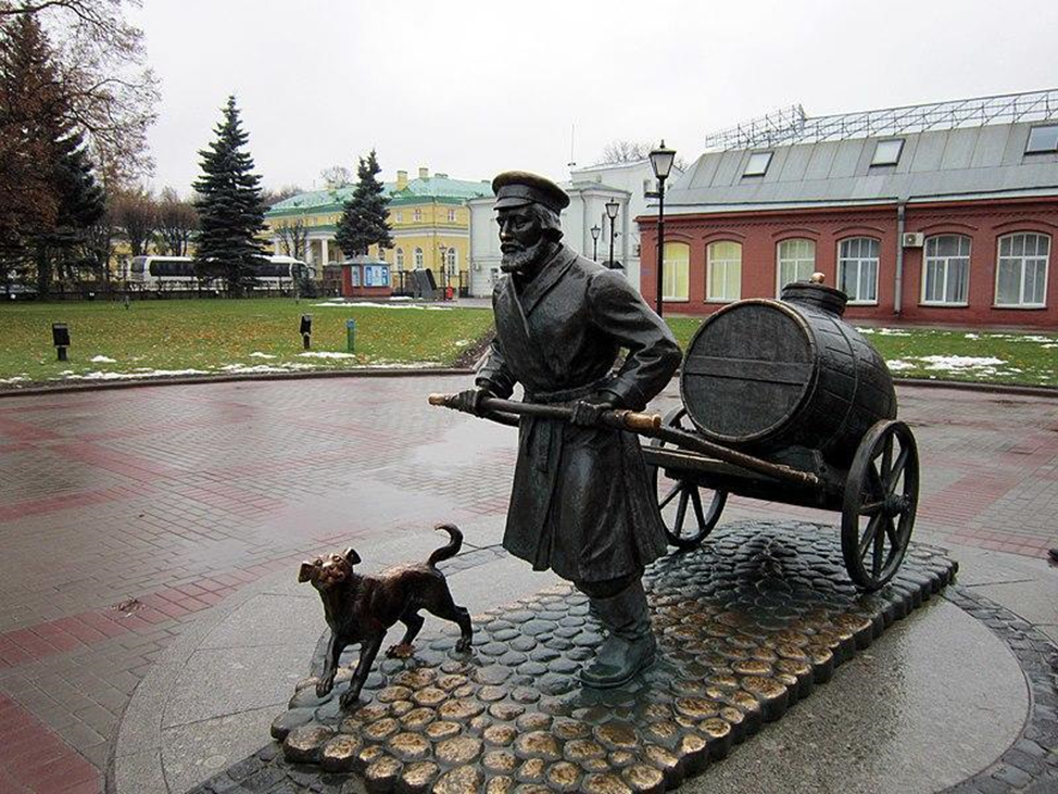 Ещё один интересный памятник, появившийся на Шпалерной улице в мае 2003 года в рамках празднования трехсотлетия Санкт-Петербурга. Как известно, водопровод «сработанный ещё рабами Рима» появился в Петербурге только во второй половине 19 века. 10 октября 1858 года император Александр II подписал устав «Акционерного общества Санкт-Петербургских водопроводов». А ещё через пять лет на улице Шпалерной, против Таврического дворца появилась первая городская водонапорная башня. В 2003 году в помещении башни открылся музей «Мир воды Санкт-Петербурга», а на площади перед ним появился памятник Петербургскому водовозу, простому мужику, занимавшемуся тем, что с раннего утра до позднего вечера развозил по домам столичных жителей воду. Водовозы делились на две большие категории: Интересно какого именно водовоза изобразили скульптор С. Дмитриев и архитектор В. Васильев в своей композиции? Памятник бронзовый, поэтому цвет бочки не определишь.