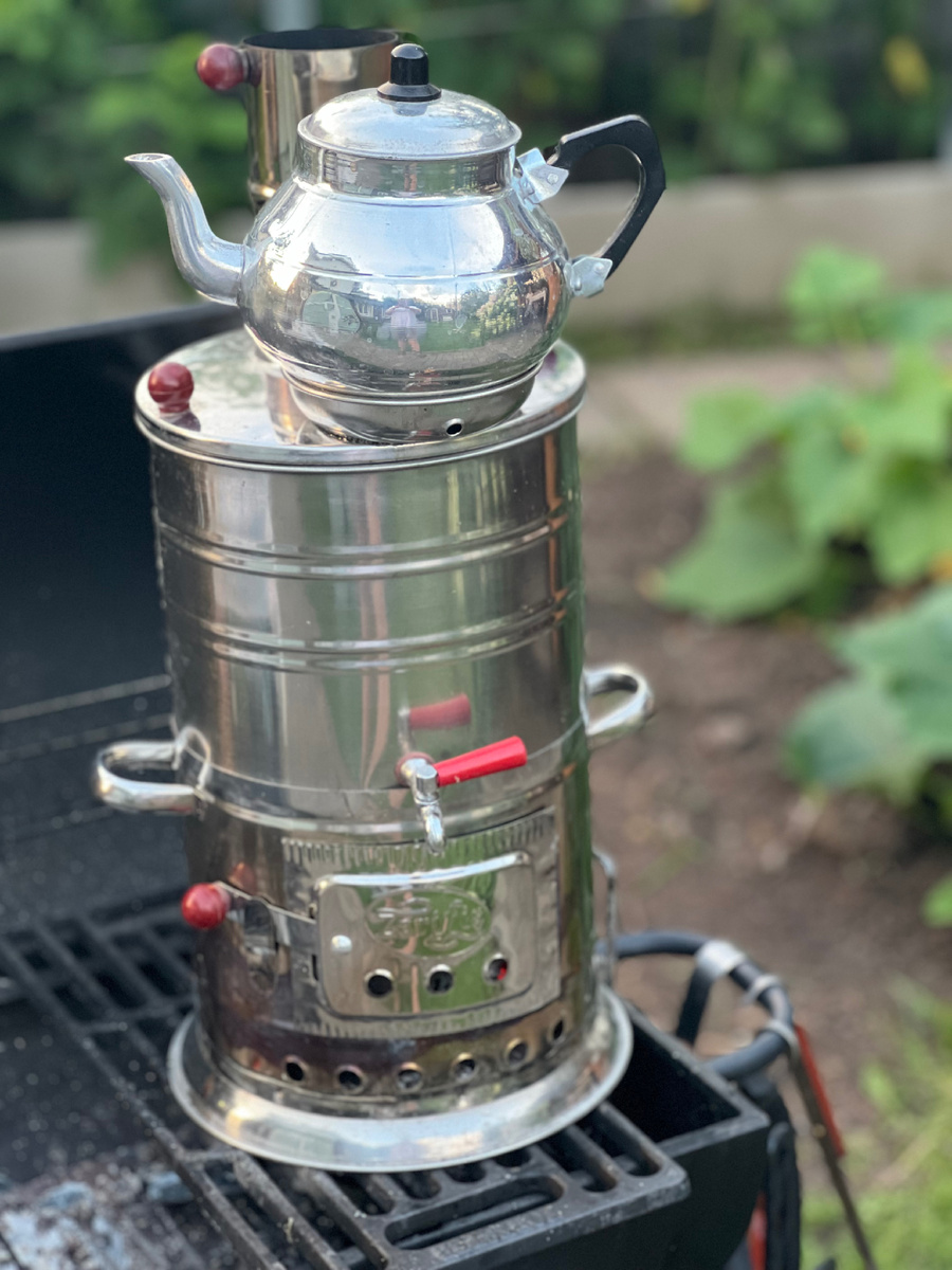 По-турецки самовар называется практически так же, как и по-русски — "семавер". Скорее всего, турки переняли традицию заваривать чай в самоваре от крымских татар, которые тесно контактировали с русскими. Крымские татары вели активные взаимоотношения с русскими, как мирные, так и менее дружелюбные. Нередко такие контакты сопровождались набегами и захватами, что позволяло татарам забирать у русских не только необходимое, но и всё, что попадалось под руку. Этим обстоятельством можно объяснить заимствование многих бытовых и культурных традиций. Исследователи считают, что именно благодаря этим многолетним контактам и военным столкновениям в быту крымских татар появились элементы русского жития, включая знаменитый самовар. Сам по себе этот прибор стал символом домашнего уюта и хозяйственности. Он был настоящим центром жизни дома, вокруг которого собиралась вся семья. Со временем традиция заваривания чая распространилась и на турецкие земли. В Турции, где чай стал неотъемлемой частью культуры