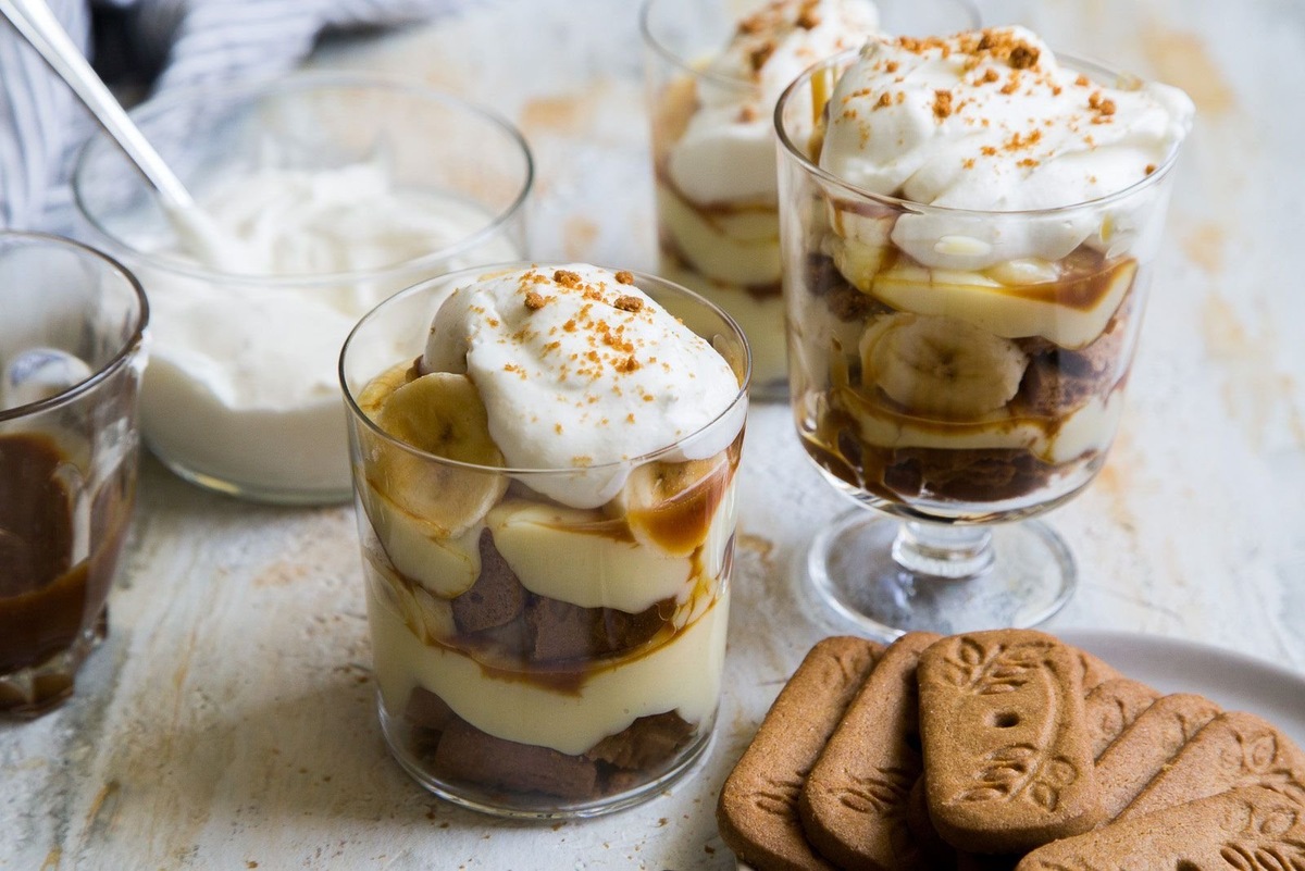 5. Формирование десерта: Выложите слой нарезанных бананов на дно стаканов или десертных чашек. Затем добавьте слой