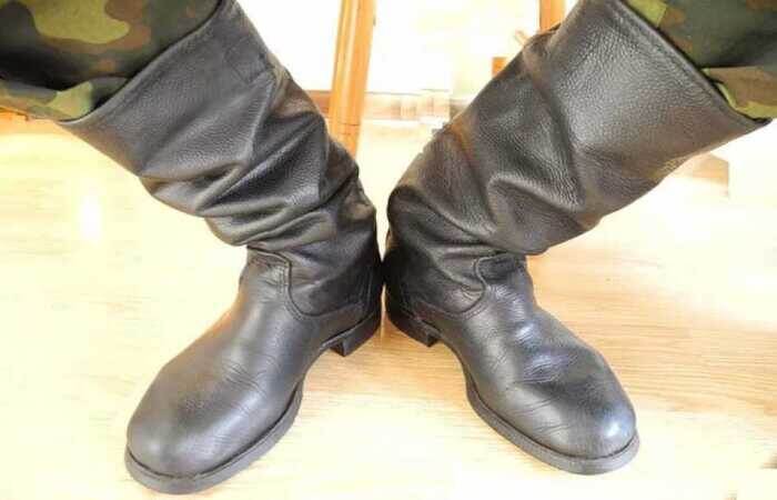 Пятый способ — ботфорты. В некоторых военных частях наоборот считалось, что длинные сапоги - это круто. Солдаты наращивали обычные сапоги и делали складки, похожие на гармошку. Могли просто сделать сапоги гармошкой с помощью утюга.