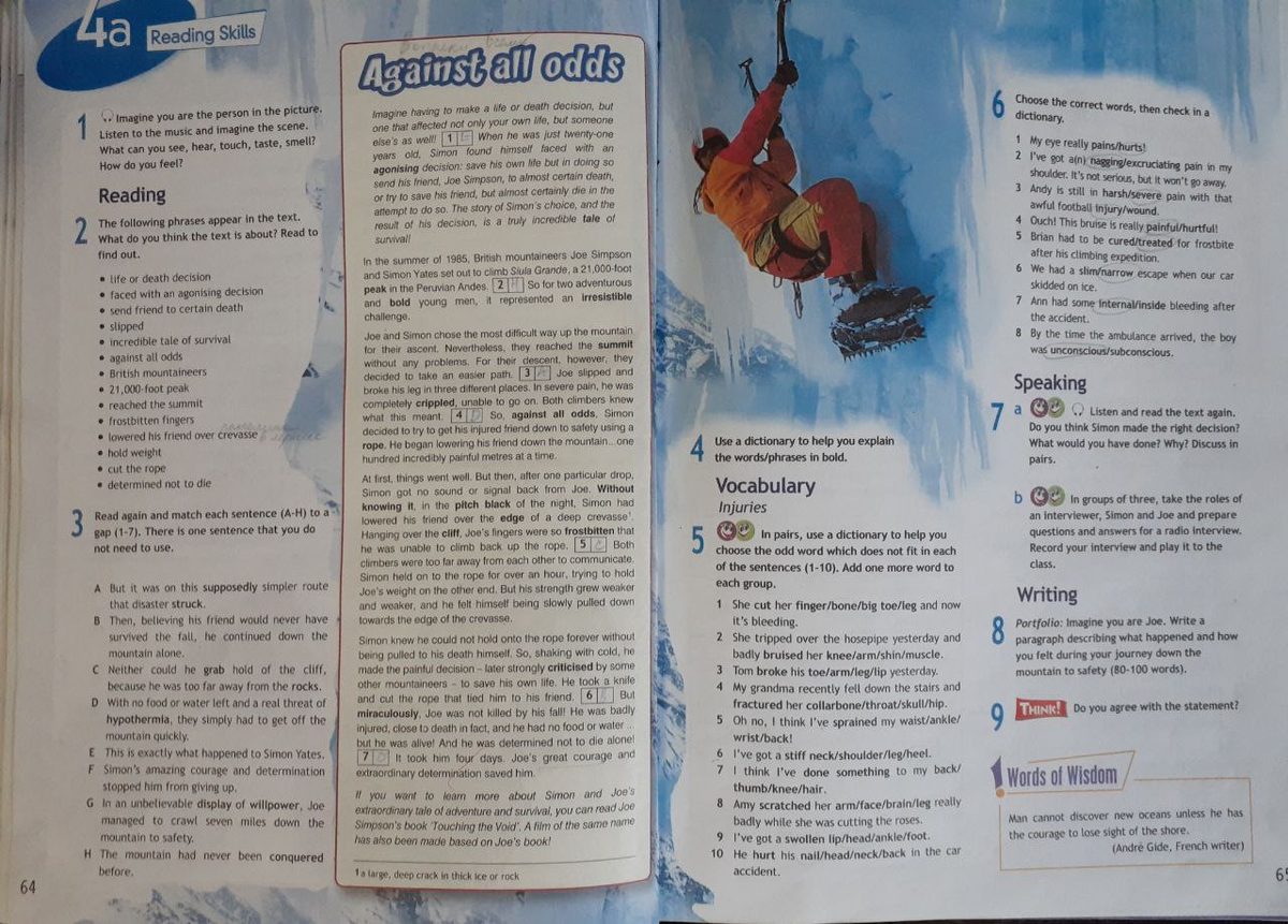 Этот материал нам нужен, чтобы описать состояние после травмы, в частности, какая бывает боль, при этом особо не вдаваясь в подробности. Всё-таки время очень ограниченно. А ещё это небольшая практика чтения аутентичного текста с вычленением нужной информации.
