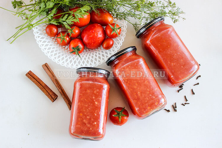 Выход: 1,2 л | Калорийность: 46.19 кКал на 100 г помидоры – 2 кг сладкий перец – 1 маленький (30 г) репчатый лук – 1 крупный (80 г) соль – 1 ст. л. или по вкусу сахар – 4 ст. л. или по вкусу 9% уксус – 2 ст. л. крахмал – 2 ст. л. вода (для крахмала) – 2 ст. л. гвоздика – 1-2 шт. лавровый лист – 1 шт. острый молотый перец – 1/3 ч. л. черный молотый перец – 1/2 ч. л. корица молотая – 1