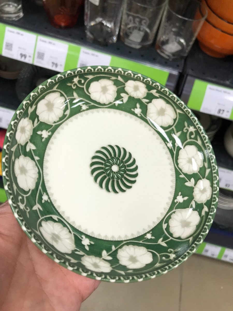 Тарелка станет украшением обеденного стола в повседневной жизни. Зеленый цветочный принт выполнен четко.