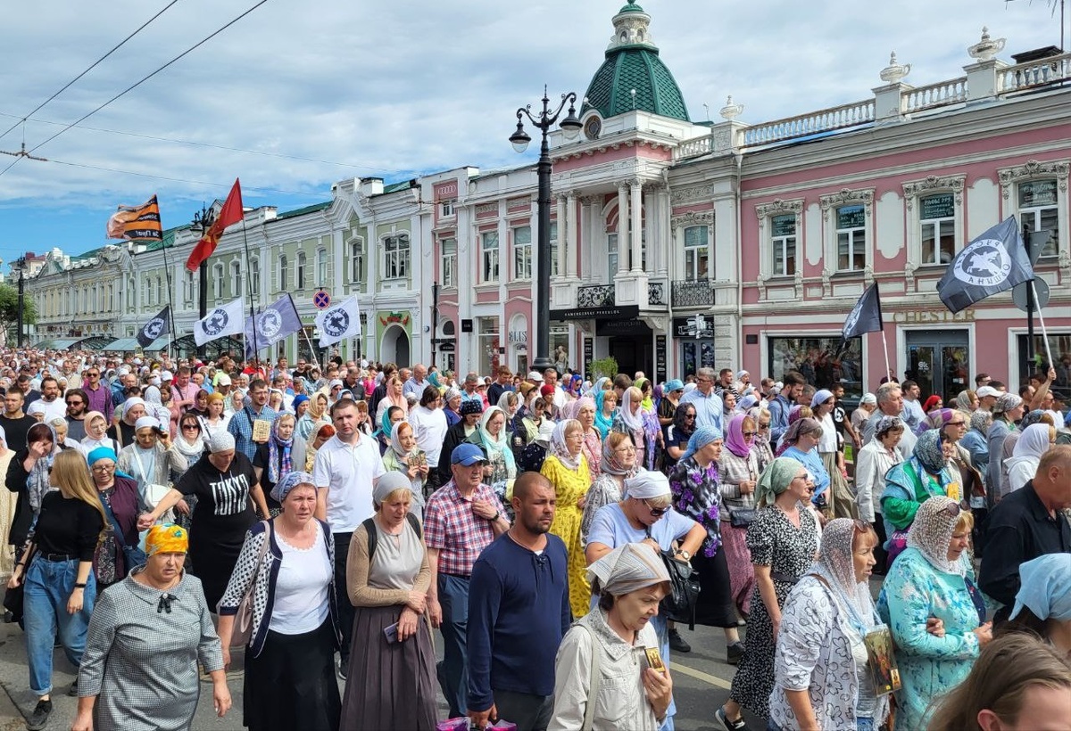 Тысячи горожан вышли на улицы, чтобы отметить День Крещения Руси. Сегодня утром в Омске начался крестный ход в честь Дня Крещения Руси. Как сообщает «Омск_путеводитель», на улицы вышли тысячи омичей. Крестный ход начался у стен Кафедрального собора и проследует к Никольскому Казачьему собору. В нем участвуют губернатор Виталий Хоценко, мэр Сергей Шелест, министр культуры Юрий Трофимов, депутаты и представители общественных организаций. Главная святыня праздника – Абалакская икона Божией Матери «Знамение». Приложиться к ней можно сегодня вечером в Никольском Казачьем соборе до закрытия храма. Омскинформ