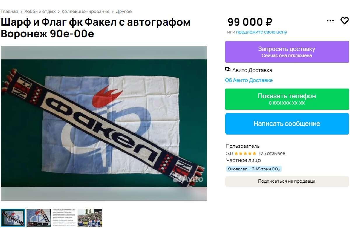 Раритетный шарф «Факела» продают за 100 тысяч в Воронеже