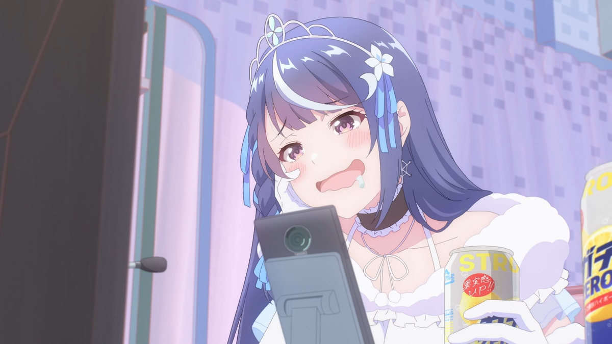 Должен вам признаться, я уже немного староват для этого де... ну вы поняли. Нет, я знаю, что за звери эти витуберы, меня не удивляет, что там своё комьюнити и даже существуют витуберские продюсерские компании. За гранью моего понимания остаётся только то, чем эта индустрия привлекает зрителей. Точнее, как, я предполагаю, что понимаю, но уверенности нет — и сам я достаточно далёк от потребления подобного контента. Блин, мне кажется, что уже чисто из-за своего задумчивого вступления мне придётся смотреть тайтл целиком. А начинается всё, собственно, с того, что написано в названии. Девушка-витубер (т.е. у которой на экране анимированная моделька вместо собственного лица) отыгрывала эдакую чистую сердцем и помыслами персону, а потом как-то раз забыла выключить стрим и спалила свою истинную суть: отаку по части витуберов, любительницу бахнуть дешёвенького хмельного, а также крепкого и пошлого словца. И, внезапно, дела её пошли в гору. Вопрос один: выдержит ли её печень? Вообще, как такая ко