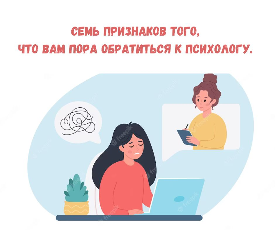 Пора идти к психологу? Если такой вопрос возник в мыслях, скорее всего, он возник не просто так. Запросы, с которыми наиболее часто обращаются к психологу, на первый взгляд, стандартны. Это может быть повышенная тревожность, неуверенность в себе, трудности в общении на работе, проблемы в семье между родственниками или между близкими людьми, трудности во взаимоотношениях между женщиной и мужчиной, отсутствие энергии и интереса к жизни. Но обычно это только так называемая верхушка айсберга. Как понять, что нужно обратиться к психологу? Основной критерий, что пора обращаться за помощью, когда вы чувствуете, что проблема достигла таких размеров и существенно ухудшает ваше качество жизни. Вот семь признаков, что вам пора обратиться за помощью: 📌 Тревога, состояние «должно случиться что-то плохое, но не понимаю, что и когда» сопровождает вас большую часть дня. 📌 Вас все раздражает, вы стали агрессивным без объективных причин. 📌 Вы слишком много работаете, при этом вам кажется, что у вас