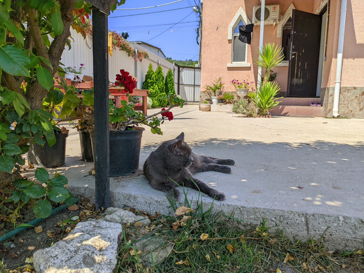 Утром всё тоже как обычно. Солнечно, но не печет, приятно греет.