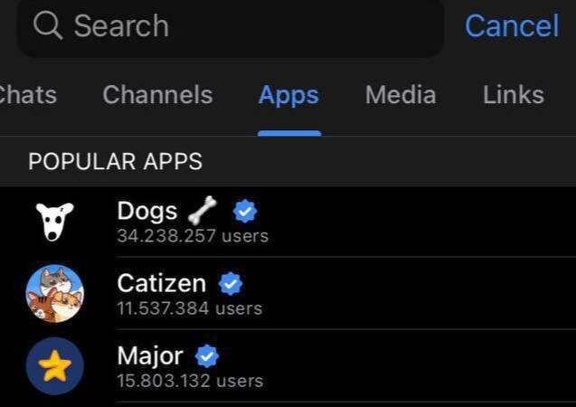Для Android уже вышла бета-версия Telegram, где наконец-то можно будет посмотреть MAU (ежемесячное количество пользователей) у каждого приложения. Кстати, Major, (https://t.me/major/start?startapp=2110198429) которому менее месяца, уже входит в Топ-3! 💻