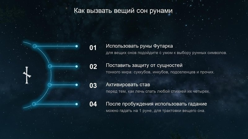 После пробуждения использовать гадание по 1 руне, для трактовки вещего сна.