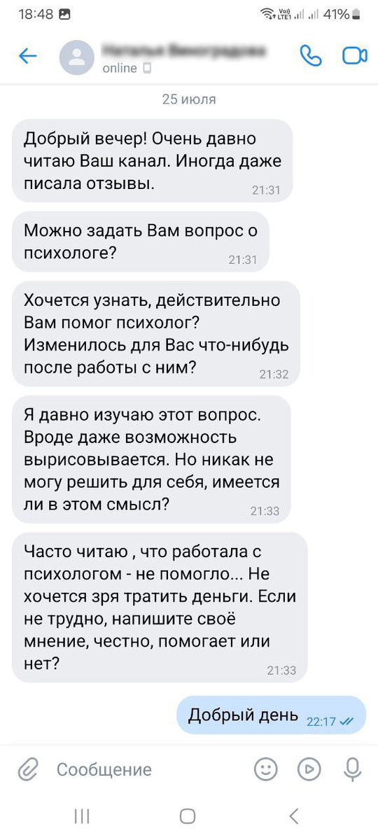 Недавно в ВК мне написала читательница моего блога сообщение с просьбой рассказать действительно ли мне помог психолог и что изменилось после работы с ним. Почему в интернете много отзывов, что занятия с психологом не помогают. Читательнице хотелось бы попробовать, но есть не однозначные сомнения.