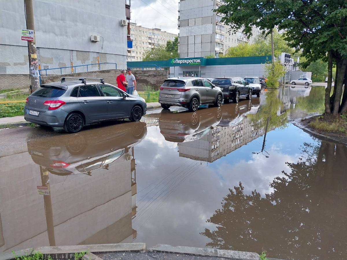 Начать надо, естественно, с субботы 3 августа. Всю предыдущую неделю шли дожди, хотя солнце тоже баловало нас. В пятницу тоже прошёл заметный ливень, в итоге в субботу я шёл на вокзал мимо такой замечательной лужи: