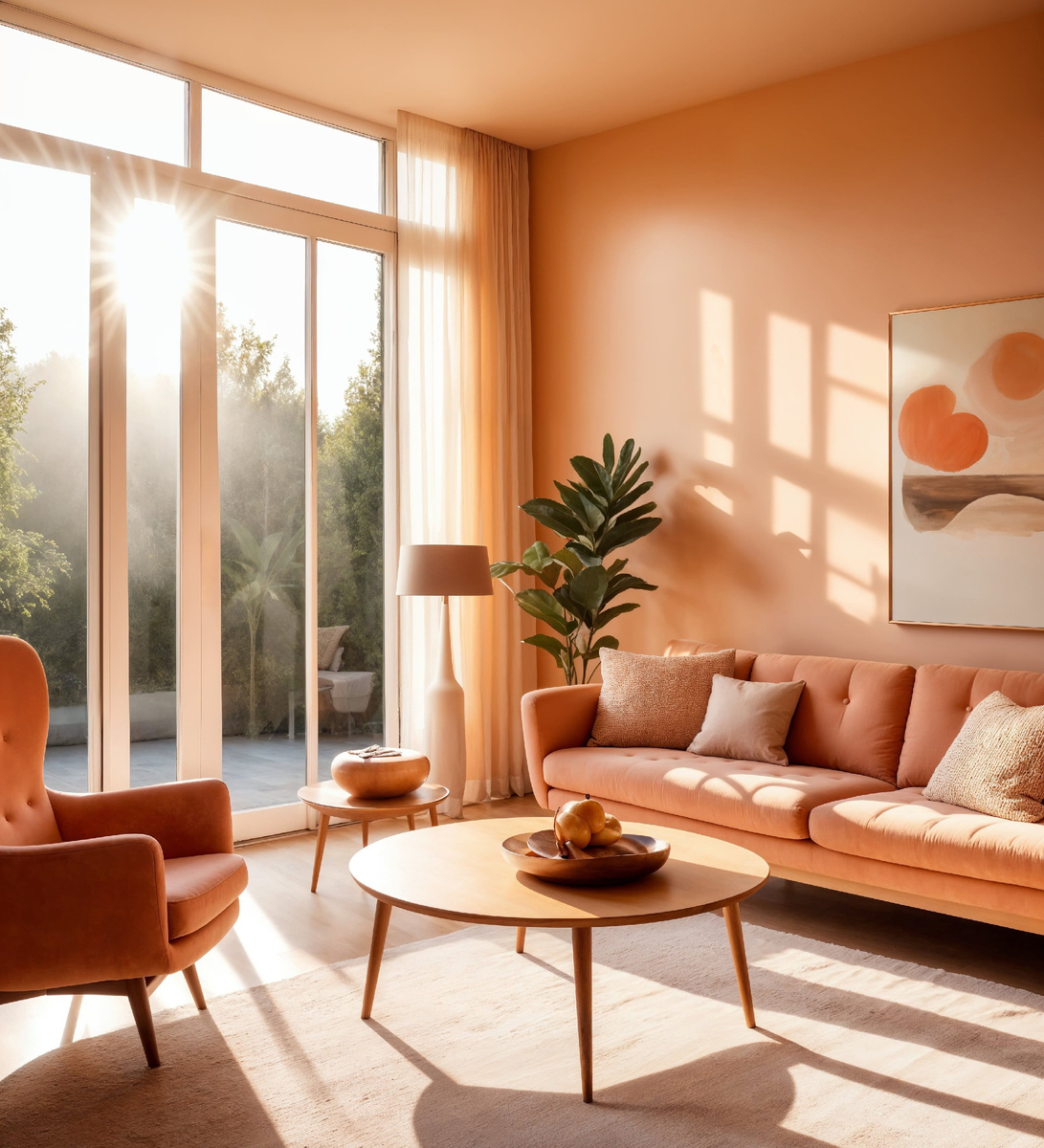 Apricot Crush легко сочетается с множеством других оттенков, от нейтральных до ярких. Он создает теплую и приглашающую атмосферу, улучшает эмоциональное состояние и придает интерьеру свежесть и легкость. Этот цвет может быть использован в акцентных стенах, текстиле, декоративных элементах или даж