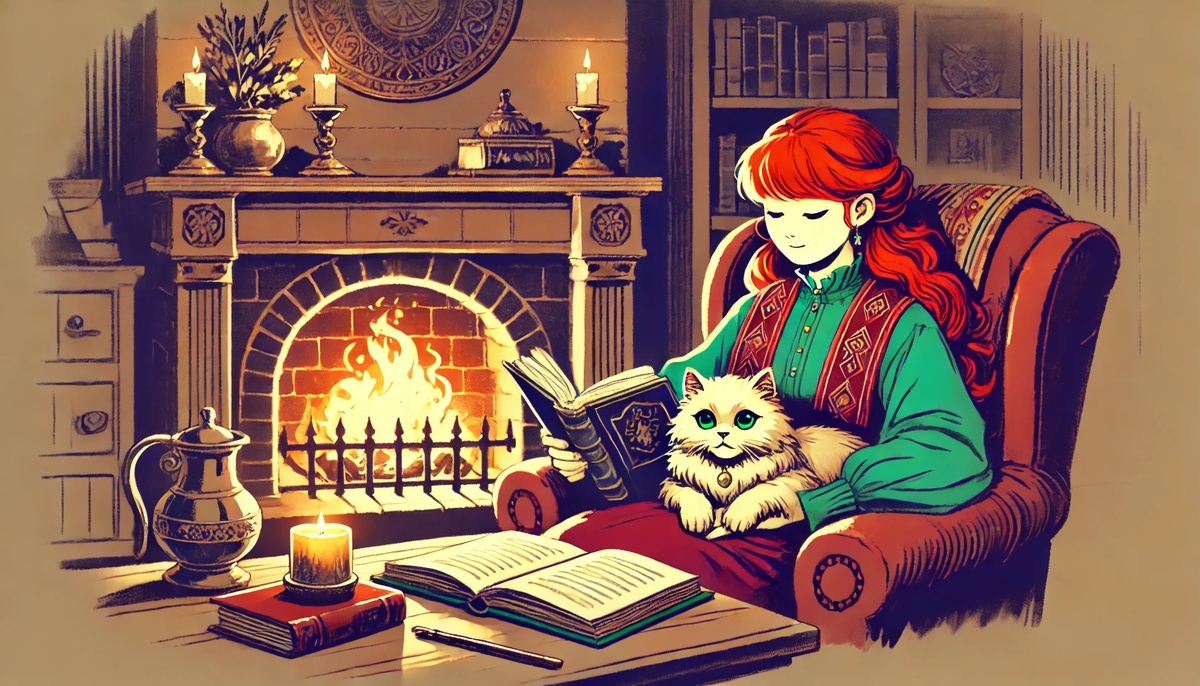 Жила-была рыжая девушка по имени Наташа. У неё была кошка, пушистая и грациозная, с изумрудными глазами, которую звали Муся. Они жили в маленьком доме на краю леса, и каждый день был наполнен радостью и смехом.