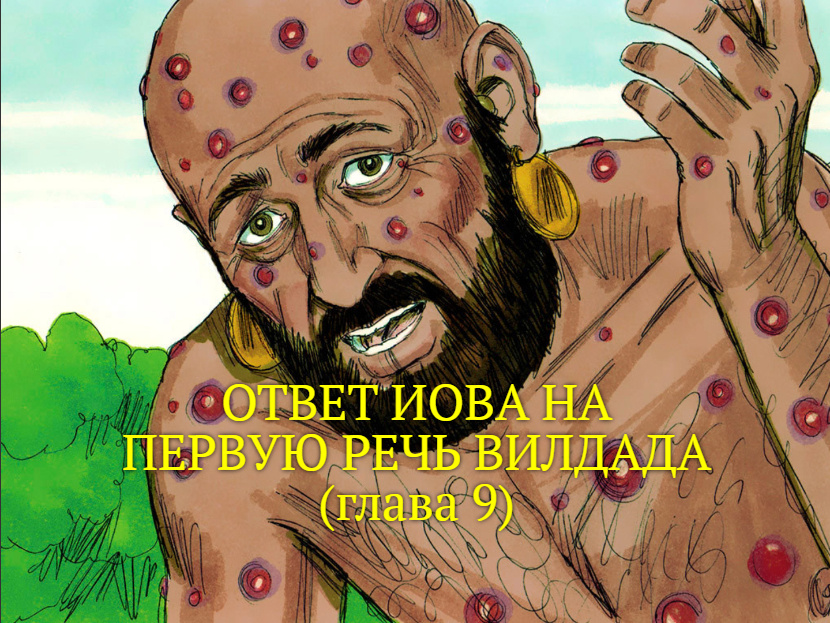 Стихи 1, 2. Иов начинает свой ответ словами: «Правда! Знаю, что так». «Это» возвращает нас к утверждению Вилдада, что «Бог не извращает суд» (8:3). Затем Иов приводит предыдущую фразу Елифаза (4:17): «Как оправдается человек пред Богом?» Размышляя о великом Боге вселенной, Иов приходит к пониманию того, насколько слабым и ничтожным является человек. Джон Хартли отмечает: «Из вопросов Иова следует, что он даже не допускает возможности выиграть тяжбу против Бога. Однако будучи убеждённым в том, что Бог не извращает суд, он задумывает невозможное, то есть судиться с Богом».