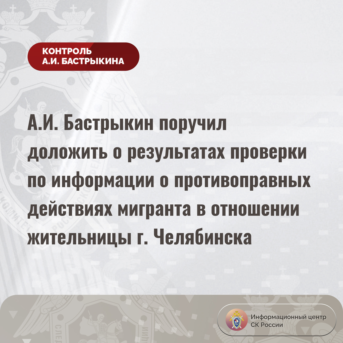 А.И. Бастрыкин поручил доложить о результатах проверки по информации о противоправных действиях мигранта в отношении жительницы г. Челябинска