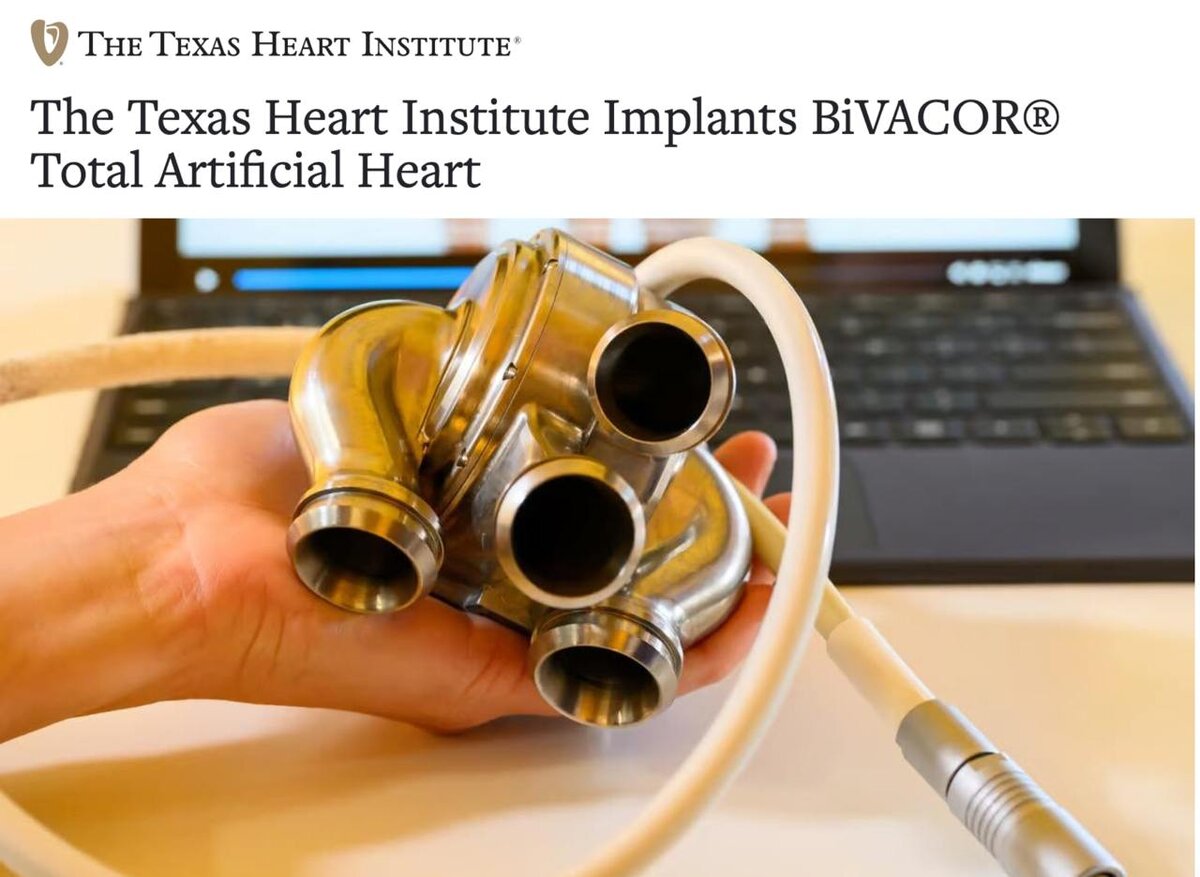 Техасские учёные впервые успешно имплантировали человеку механическое сердце. У пациента была терминальная стадия сердечной недостаточности. Его спасли, имплантировав «BiVACOR Total Artificial Heart» — бивентрикулярный роторный насос для крови из титана. Теперь он — официально киборг.