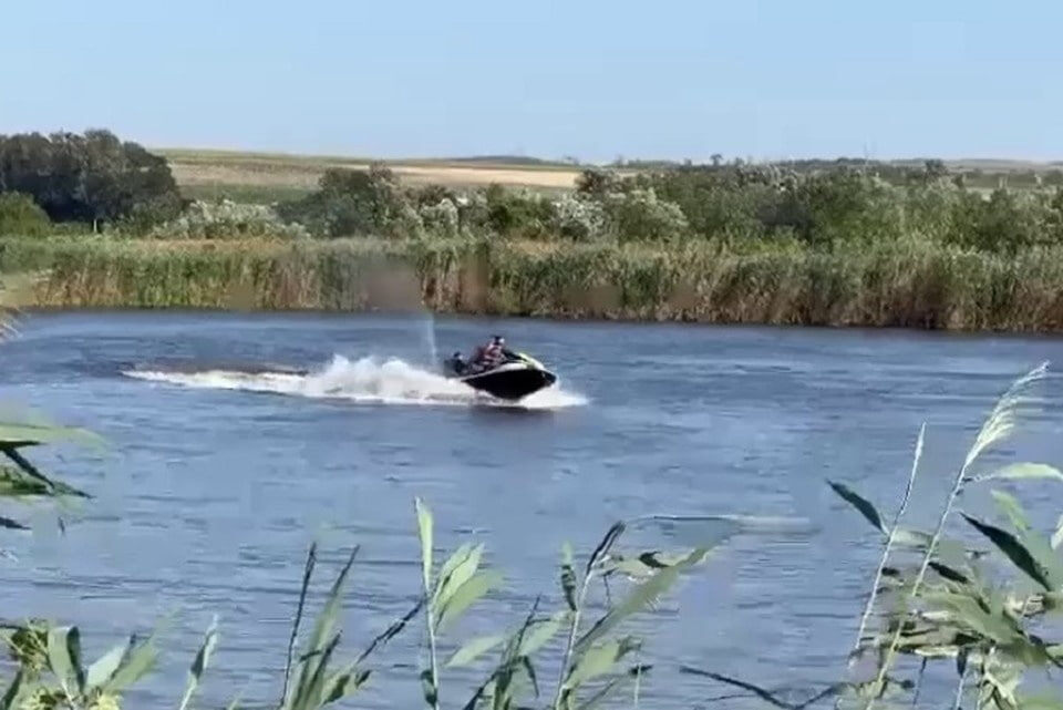 На кадрах видно, как три брата наслаждаются катанием по водной поверхности небольшого озера. В какой-то момент гидроцикл накренился, и все трое упали в воду.