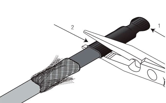 2. Подрезать экранирующую оплетку, оставив не более 5 мм.