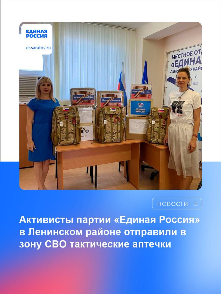 💊Активисты партии «Единая Россия» в Ленинском районе отправили в зону СВО тактические аптечки